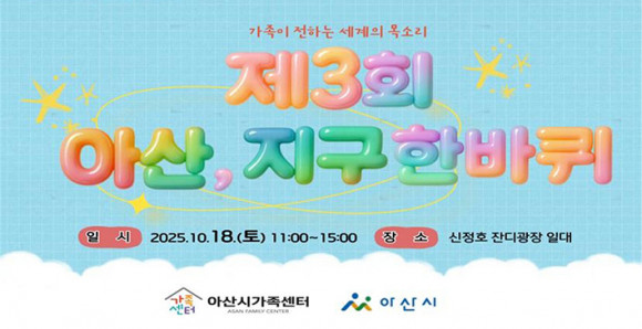 ¾Æ»ê½Ã°¡Á·¼¾ÅÍ(¼¾ÅÍÀå ¿ìÁ¤¹Î)´Â ¿À´Â 18ÀÏ 11½ÃºÎÅÍ ½ÅÁ¤È£ Àܵð±¤Àå ÀÏ´ë¿¡¼ ¡°Á¦3ȸ ¾Æ»ê, Áö±¸ÇѹÙÄû – °¡Á·ÀÌ ÀüÇÏ´Â ¼¼°èÀÇ ¸ñ¼Ò¸®¡±°¡ ÁøÇàµÈ´Ù.