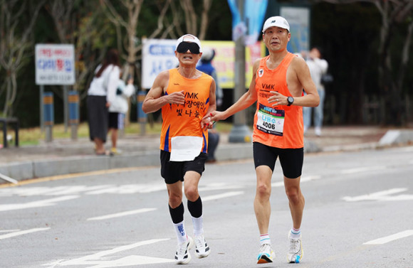 ½Ã°¢Àå¾ÖÀÎ Âü°¡ÀÚ´Â µ¿¹ÝÁÖÀÚ¿Í ¼ÕÀ» ¸ÂÀâ°í ÄÚ½º¸¦ ¿ÏÁÖÇß°í, ÈÙü¾î Âü°¡Àڵ鵵 ÇÔ²² ·¹À̽º¸¦ ÆîÄ¡¸ç Àå¾Ö¿¡ ´ëÇÑ Æí°ßÀ» ³Ñ¾î¼± °¨µ¿ÀÇ ¼ø°£À» ¸¸µé¾î³Â´Ù. Àå¾ÖÀΰú ºñÀå¾ÖÀÎÀÌ µ¿ÀÏÇÑ ÄÚ½º¸¦ ÇÔ²² ´Þ¸®´Â Àü±¹ À¯ÀÏÀÇ ¾î¿ï¸² ¸¶¶óÅæÀ¸·Î¼, Âü°¡ÀÚµé·ÎºÎÅÍ Å« È£ÀÀÀ» ¾ò¾ú´Ù.