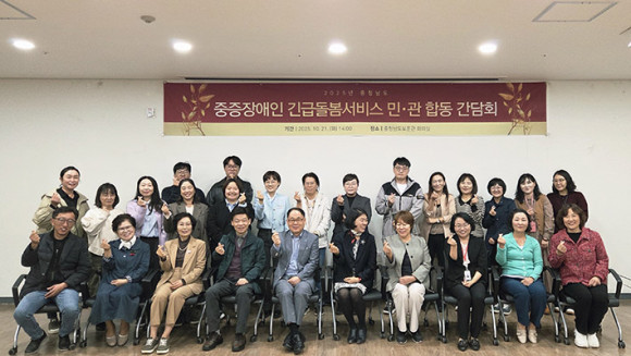 Ãæ³²Àå¾ÖÀΰ¡Á·Áö¿ø¼¾ÅÍ(¼¾ÅÍÀå ±èºÀ¿î)´Â 10¿ù 21ÀÏ ÃæÃ»³²µµº¸Èưü¿¡¼ µµ³» 9°³ Àå¾ÖÀΰ¡Á·Áö¿ø¼¾ÅÍ ¼¾ÅÍÀå ¹× Á¾»çÀÚ, Ãæ³²µµÃ» Àå¾ÖÀκ¹ÁöÆÀÀåÀ» ºñ·ÔÇÏ¿© 8°³ ½Ã‧±º ´ã´ç °ø¹«¿øÀÌ Âü¼®ÇÑ °¡¿îµ¥ ¡®2025³â ÁßÁõÀå¾ÖÀÎ ±ä±Þµ¹º½¼ºñ½º ¹Î‧°ü ÇÕµ¿ °£´ãȸ¡¯¸¦ °³ÃÖÇß´Ù.