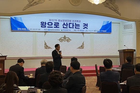 Ãæ³²ºÏºÎ»ó°øÈ¸ÀǼÒ(ȸÀå ¹®»óÀÎ)¿Í Çö´ë°æÁ¦¿¬±¸¿øÀÌ °øµ¿ ÁÖ°üÇϰí, ÃæÃ»³²µµ, õ¾È½Ã, ¾Æ»ê½Ã, ÇϳªÀºÇàÀÌ ÈÄ¿øÇÏ´Â ¡®Á¦197Â÷ Ãæ³²°æÁ¦Æ÷·³¡¯ÀÌ 2025³â 10¿ù 22ÀÏ(¼ö) ¿ÀÀü 7½Ã, ¿Â¾ç°ü±¤È£ÅÚ¿¡¼ ¼ºÈ²¸®¿¡ °³ÃֵƴÙ.