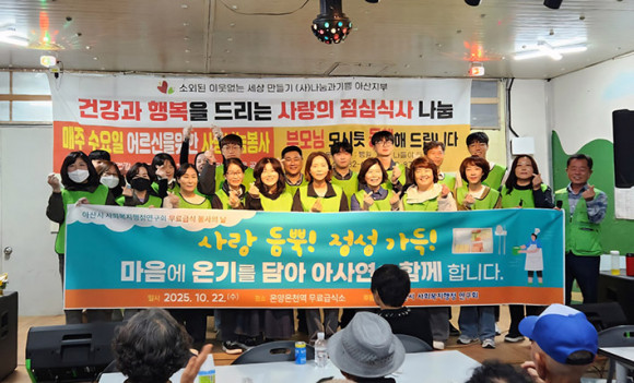 ¾Æ»ê½Ã »çȸº¹ÁöÁ÷ °ø¹«¿øÀ¸·Î ±¸¼ºµÈ ¾Æ»ê½Ã »çȸº¹ÁöÇàÁ¤¿¬±¸È¸(ȸÀå ±èÀº°æ, ÀÌÇÏ ¡®¾Æ»ê»çÇ࿬¡¯)°¡ Áö³ 22ÀÏ ¿Â¾ç¿Âõ¿ª ¹«·á±Þ½Ä¼Ò¿¡¼ Áö¿ª ¾î¸£½ÅÀ» À§ÇÑ ¹«·á±Þ½Ä ºÀ»ç Ȱµ¿¸¦ ÆîÃÆ´Ù°í ¹àÇû´Ù.