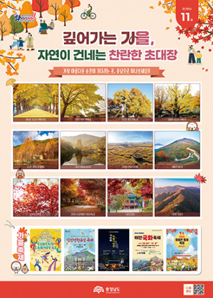 | | ¡è¡è ¿ù°£Ãæ³² 11¿ù Æ÷½ºÅÍ<Á¦°ø=Ãæ³²µµÃ»> | ¨Ï (ÁÖ)¿Â¾ç½Å¹®»ç | ¡Þ ³ë¶õºûÀ¸·Î ¹°µå´Â ÀºÇ೪¹« ¸í¼Ò