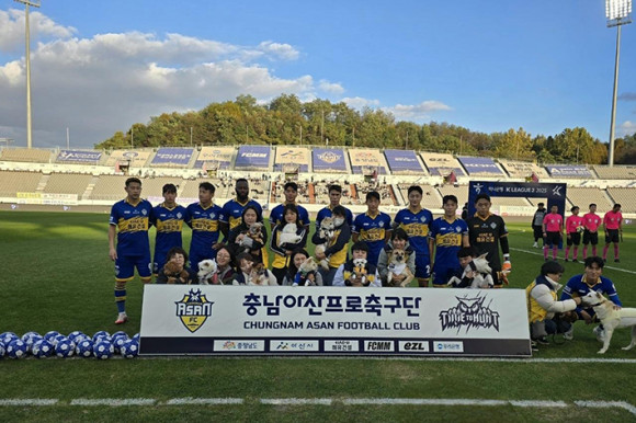 Áö³ 2ÀÏ À̼ø½ÅÁ¾ÇտÀå¿¡¼ ¿¸° Ãæ³²¾Æ»êFC Ȩ°æ±â¿¡¼ ¾Æ»ê½Ãµ¿¹°º¹ÁöÁö¿ø¼¾ÅÍ ¡®¿Âº½¡¯À» ÅëÇØ ¹Ý·Áµ¿¹°À» ÀÔ¾çÇÑ °¡Á· 11¸íÀ» ÃÊÃ»ÇØ ¼±¼ö´Ü°ú ÇÔ²² ÀÔÀåÇϴ Ưº° ¿¡½ºÄÚÆ® Çà»ç¸¦ ÁøÇàÇß´Ù.