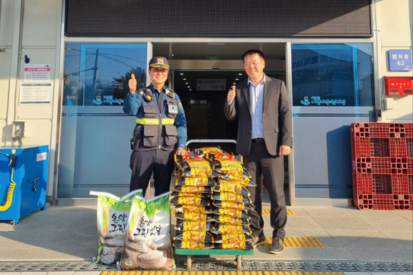 ¾Æ»ê½Ã¸Ô°Å¸®Àç´Ü(»óÀÓÀÌ»ç À¯Áö¿ø)Àº 11¿ù 4ÀÏ, ¾Æ»ê°æÂû¼¸¦ ¹æ¹®ÇÏ¿© Áö¿ª»çȸ »ó»ýÇù·ÂÀÇ ÀÏȯÀ¸·Î ¾Æ»ê Áö¿ª¿¡¼ ¼öÈ®ÇÑ ½Ò 20kg µÎ Æ÷´ë¸¦ Àü´ÞÇß´Ù.