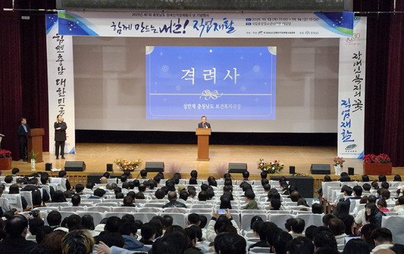 ¸Å³â 10¿ù 30ÀÏ·Î ÁöÁ¤ÇÑ ¡®Àå¾ÖÀÎÁ÷¾÷ÀçȰÀÇ ³¯¡¯À» ¸Â¾Æ Çѱ¹Àå¾ÖÀÎÁ÷¾÷ÀçȰ½Ã¼³Çùȸ Ãæ³²Çùȸ°¡ ÁÖÃÖ¡¤ÁÖ°üÇÑ À̳¯ Çà»ç´Â ¼º¸¸Á¦ µµ º¸°Çº¹Áö±¹Àå, Á÷¾÷ÀçȰ½Ã¼³Çùȸ, Àå¾ÖÀΰí¿ë°ø´Ü, Á÷¾÷ÀçȰ½Ã¼³ ÀÌ¿ëÀÚ¡¤Á¾»çÀÚ µî 650¿© ¸íÀÌ Âü¼®ÇØ ÀÚ¸®¸¦ ºû³Â´Ù.