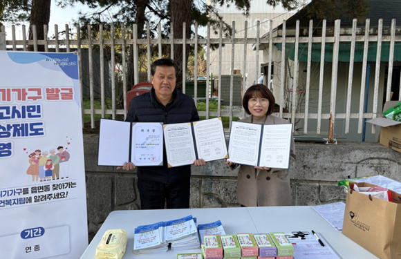 ¾Æ»ê½Ã ¿°Ä¡À¾ÇàÁ¤º¹Áö¼¾ÅÍ(À¾Àå ½É¿ë±Ù)´Â 13ÀÏ ¼Û°î½ÅÀÏ¾ÆÆÄÆ® °ü¸®»ç¹«¼Ò(¼ÒÀå À̱âÁß)¿Í ÇÔ²² °øµ¿ÁÖÅà ³» º¹Áö À§±â°¡±¸ Á¶±â ¹ß±¼ ¹× °íµ¶»ç ¿¹¹æÀ» À§ÇÑ ¾÷¹«Çù¾àÀ» ü°áÇß´Ù.