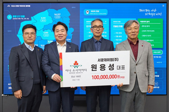 ¿À¼¼Çö ¾Æ»ê½ÃÀåÀº ¡°¼±¤Á¦ÀÌ¿¥(ÁÖ) ¿ø¿ë¼º ´ëÇ¥´Ô°ú ÇѽÂÀº ´ÔÀÇ ³ëºí·¹½º ¿Àºí¸®ÁÖ ½Çõ¿¡ ±íÀÌ °¨»çµå¸®¸ç, ±â¾÷°ú °³ÀÎÀÌ ÇÔ²² Áö¿ª»çȸ¸¦ À§ÇØ Çå½ÅÇÏ´Â ¸ð½ÀÀº ¿ì¸® Áö¿ª ³ª´® ¹®ÈÀÇ ±Í°¨ÀÌ µÇ°í ÀÖ´Ù¡±°í ¸»Çß´Ù.