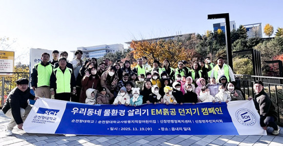 ¼øÃµÇâ´ë(ÃÑÀå ¼Ûº´±¹) 19ÀÏ ½Åâ¸é À¾³»¸® À¾³»Áö(¼øÃµÇâÈ£) ÀÏ´ë¿¡¼ Áö¿ª »ýÅÂȯ°æ °³¼±À» À§ÇÑ ¡®¿ì¸®µ¿³× ¹°È¯°æ »ì¸®±â EMÈë°ø ´øÁö±â Ä·ÆäÀΡ¯À» ÁøÇàÇß´Ù.