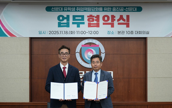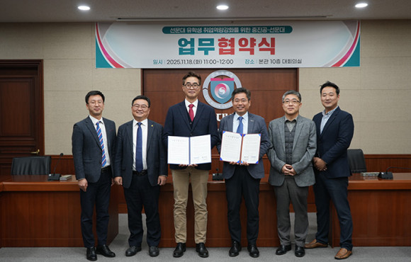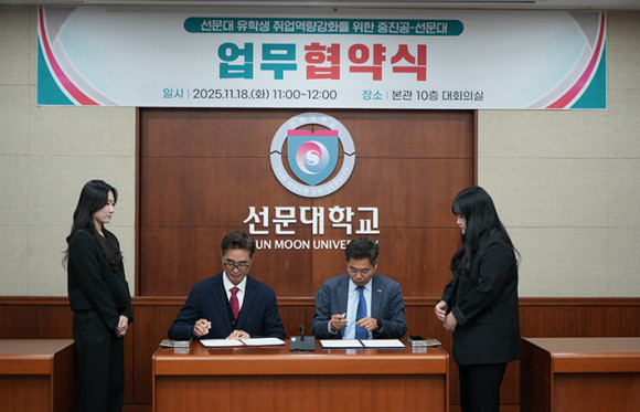 ¼±¹®´ëÇб³(ÃÑÀå ¹®¼ºÁ¦)°¡ 18ÀÏ º»°ü ´ëȸÀǽǿ¡¼ Áß¼Òº¥Ã³±â¾÷ÁøÈï°ø´Ü ÃæÃ»¿¬¼ö¿ø(¿øÀå ÀÌ¿ÏÈñ)°ú ¿Ü±¹ÀÎ À¯ÇлýÀÇ Ãë¾÷¿ª·® °È¸¦ À§ÇÑ ¾÷¹«Çù¾à(MOU)À» ü°áÇß´Ù.