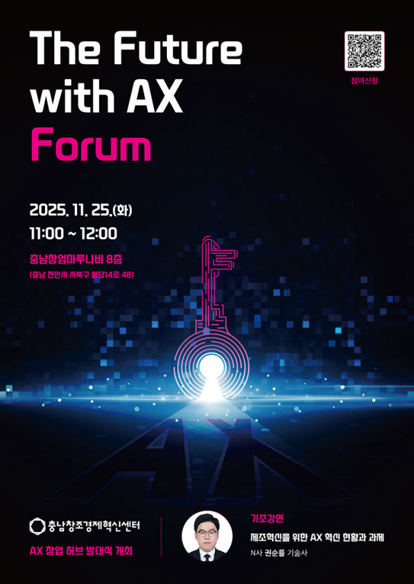 (Àç)Ãæ³²Ã¢Á¶°æÁ¦Çõ½Å¼¾ÅÍ(ÀÌÇÏ Ãæ³²Çõ½Å¼¾ÅÍ)´Â ¿À´Â 11¿ù 25ÀÏ Ãæ³²Ã¢¾÷¸¶·ç³ªºñ 8Ãþ¿¡¼ ¿ÀÀü 11½ÃºÎÅÍ Áö¿ª AI Àüȯ°ú AX ±â¹Ý â¾÷ Ȱ¼ºÈ¸¦ À§ÇÑ The Future with AX ForumÀ» °³ÃÖÇÑ´Ù°í ¹àÇû´Ù.