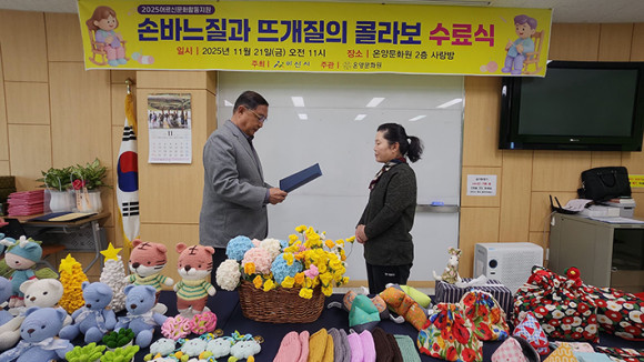 ¿Â¾ç¹®È¿ø(¿øÀå Á¤Á¾È£)Àº 2025 ¾î¸£½Å¹®ÈÇÁ·Î±×·¥ Áö¿ø»ç¾÷ÀÎ ¡®¹Ù´ÀÁú°ú ¶ß°³ÁúÀÇ Äݶ󺸡¯ ¼ö·á½ÄÀ» 11¿ù 21ÀÏ(±Ý) ¿ÀÀü 11½Ã ¿Â¾ç¹®È¿ø 2Ãþ »ç¶û¹æ¿¡¼ ½Ç½ÃÇß´Ù.