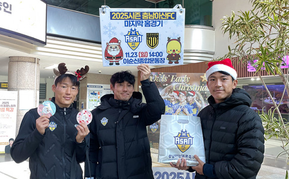 Ãæ³²¾Æ»êÇÁ·ÎÃ౸´Ü(ÀÌÇÏ Ãæ³²¾Æ»êFC)Àº Áö³ 20ÀÏ(¸ñ) 2025½ÃÁ𠸶Áö¸· Ȩ°æ±â¸¦ ¾ÕµÎ°í ¾Æ»ê½Ãû°ú ¾Æ»ê½Ã °ü³» ´ëÇÐ 3°÷(¼±¹®´ëÇб³, ¼øÃµÇâ´ëÇб³, È£¼´ëÇб³)À» ã¾Æ ÆÒµé°ú Á÷Á¢ ¸¸³ª´Â ±ô¦ °Ô¸±¶ó È«º¸ Ȱµ¿À» ÁøÇàÇß´Ù.