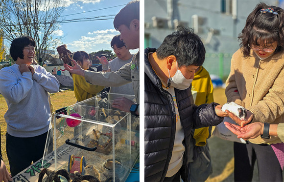 Çѱ¹ÁöüÀå¾ÖÀÎÇùȸ ¾Æ»ê½ÃÀå¾ÖÀκ¹Áö°ü(°üÀå À±Á¤¹®)Àº Áö³ 21ÀÏ(±Ý) º¹Áö°ü ºÎ¼³ ÁÖ°£º¸È£½Ã¼³¿¡¼ ¹ß´ÞÀå¾ÖÀÎÀ» À§ÇÑ µ¿¹°¸Å°³È°µ¿ ÇÁ·Î±×·¥À» ÁøÇàÇϸç ÀÌ¿ëÀÚµéÀÇ Å« È£ÀÀÀ» ¾ò¾ú´Ù.
