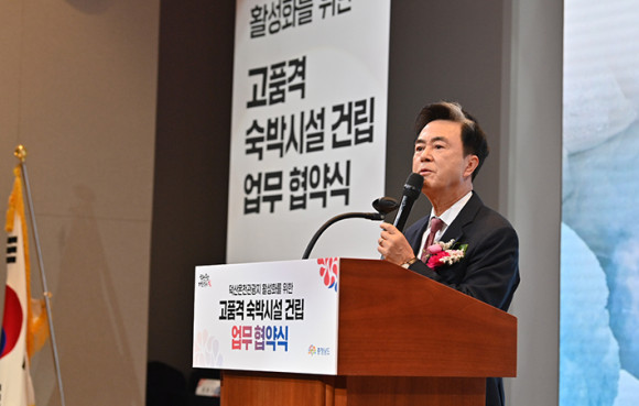 ±è¼±±Ô ȸÀåÀº ¡°È£¹ÝÀÌ º¸À¯ÇÑ Ç³ºÎÇÑ ¸®Á¶Æ® ¿î¿µ °æÇèÀ» ¹ÙÅÁÀ¸·Î, ´ö»ê¿ÂõÀÌ Áö¿ª Áֹΰú ÇÔ²² ÇÑ ´Ü°è ´õ ¹ßÀüÇϰí, °ü±¤Áö Ȱ¼ºÈ ¹× Áö¿ª ȯ°æ °³¼±À¸·Î À̾îÁú ¼ö ÀÖµµ·Ï µµ¿Í ¿¹»ê±º, Ãæ³²°³¹ß°ø»ç¿Í ±ä¹ÐÈ÷ Çù·ÂÇϰڴ١±°í È´äÇß´Ù.
