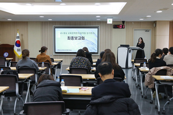 ¿ÃÇØ Ãæ³²±³À°Ã» ±³À°Á¤Ã¥ ¿¬±¸¿¡´Â ±³À°Àü¹®Á÷°ú ±³»ç¸¦ ÇÕÃÄ 60¸íÀÌ Âü¿©ÇßÀ¸¸ç, Áö³ 1¿ùºÎÅÍ ÀÚ¹®À§¿øÀÇ Áö¿ø ¾Æ·¡ ¿¬±¸È°µ¿À» ÁøÇàÇØ¿Ô´Ù. ±³À°Á¤Ã¥¿¬±¸¼Ò´Â ÃÖÁ¾º¸°íȸ¿¡¼ ¹ßÇ¥ÇÑ ÀڷḦ Áß½ÉÀ¸·Î ´ÙÀ½´Þ ÃÖÁ¾ ¿¬±¸º¸°í¼¸¦ °øÀ¯ÇÒ °èȹÀÌ´Ù.