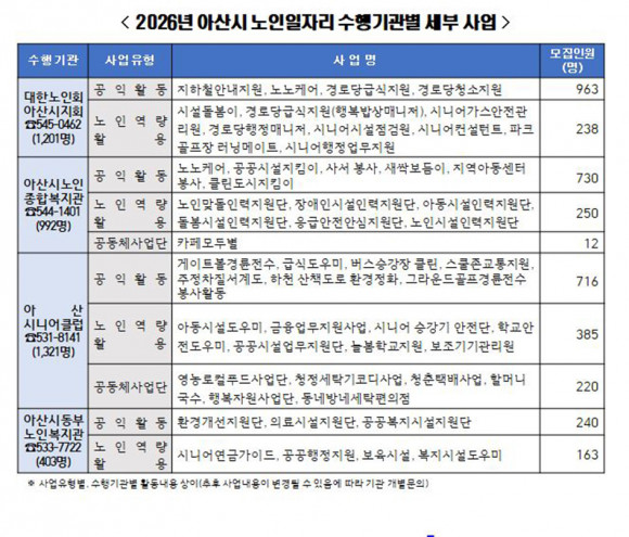 ¾Æ»ê½Ã, 2026³â ³ëÀÎÀÏÀÚ¸® µî Âü¿©ÀÚ 3,917¸í ¸ðÁý