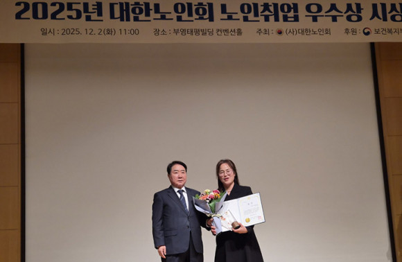 ´ëÇѳëÀÎȸ ¾Æ»ê½ÃÁöȸ(ÁöȸÀå ¿ÀÄ¡¼®)´Â 2025³â 12¿ù 2ÀÏ(È) ¼¿ï Áß±¸ ºÎ¿µÅÂÆòºôµù ÄÁº¥¼ÇȦ¿¡¼ ´ëÇѳëÀÎȸ(Áß¾ÓȸÀå ÀÌÁß±Ù)°¡ ÁÖÃÖÇÏ°í º¸°Çº¹ÁöºÎ°¡ ÈÄ¿øÇÏ´Â ¡®2025³â ³ëÀÎÃë¾÷ ¿ì¼ö»ó ½Ã»ó½Ä¡¯¿¡¼ ¹Î°£ÀÏÀÚ¸® Ãë¾÷ ¾Ë¼±ÀÇ ¼º°ú ±Ø´ëÈ·Î ¾Æ»ê½ÃÁöȸ °¹Î°æ Ãë¾÷Áö¿ø¼¾ÅÍÀåÀÌ ¡°Ãë¾÷¿Õ¡±À¸·Î ¼±Á¤µÇ¾î ´ëÇѳëÀÎȸ»óÀ» ¼ö»óÇß´Ù°í ¹àÇû´Ù.