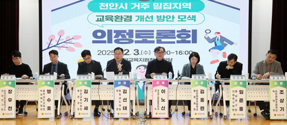 ÃæÃ»³²µµÀÇȸ´Â 3ÀÏ Ãµ¾È±³À°Áö¿øÃ» ´ë°´ç¿¡¼ ¡®Ãµ¾È½Ã °ÅÁÖ¹ÐÁýÁö¿ª ±³À°È¯°æ °³¼± ¹æ¾È ¸ð»ö¡¯À» ÁÖÁ¦·Î ÀÇÁ¤Åä·Ðȸ¸¦ °³ÃÖÇß´Ù.
