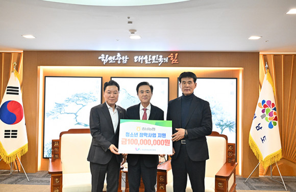 ÃæÃ»³²µµÆò»ý±³À°ÀÎÀçÀ°¼ºÁøÈï¿ø(ÀÌ»çÀå ±èÅÂÈì)ÀÌ NH³óÇùÀºÇà Ãæ³²º»ºÎ·ÎºÎÅÍ Ã»¼Ò³â Áö¿øÀ» À§ÇÑ ÀåÇÐ±Ý 1¾ï ¿øÀ» ±âŹ¹Þ¾Ò´Ù.