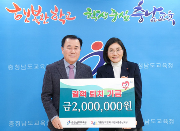 Ãæ³²±³À°Ã»(±³À°°¨ ±èÁöö)Àº 10ÀÏ(¼ö) µµ±³À°Ã»¿¡¼ ´ëÇѰáÇÙÇùȸ ´ëÀü¼¼Á¾Ãæ³²ÁöºÎ¿¡ °áÇÙÅðÄ¡ ±â±Ý 200¸¸ ¿øÀ» ±âŹÇϰí, ¡®2025 Å©¸®½º¸¶½º ¾Á ÁõÁ¤½Ä¡¯À» ÁøÇàÇß´Ù.