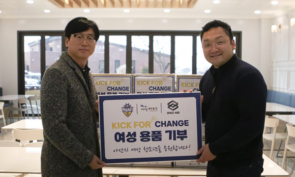 ¡®KICK FOR CHANGE¡¯´Â ±¸´Ü F&B ´ëÇà»çÀÎ ¢ß½ºÆäÀ̽ºÇãºê¿Í ÇÔ²² ÁøÇàÇÏ´Â »çȸ°øÇå Ä·ÆäÀÎÀ¸·Î, Ȩ°æ±â¿¡¼ ¼±¼öµéÀÌ µæÁ¡ÇÒ ¶§¸¶´Ù ¿©¼º¿ëǰ 1ÆÑÀ» Àû¸³ÇØ Áö¿ª û¼Ò³â º¸È£±â°ü¿¡ ±âºÎÇϴ Ȱµ¿ÀÌ´Ù.