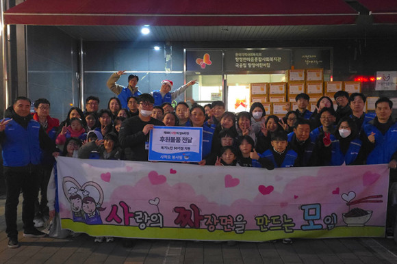 À̹ø Çà»ç´Â »ï¼ºµð½ºÇ÷¹ÀÌ ÀÓÁ÷¿ø ¹× ÀÚ³àµé·Î ±¸¼ºµÈ »çÂ¥¸ð(»ç¶ûÀÇ Â¥Àå¸éÀ» ¸¸µå´Â ¸ðÀÓ) ºÀ»çÆÀ ȸ¿øµéÀÇ ±âºÎ±ÝÀ¸·Î ¸¶·ÃÇÑ ½Ò°ú ¶ó¸é µî ½Ä·áǰÀ» Áö¿ª»çȸ¿¡ Àü´ÞÇÏ¸ç µû¶æÇÑ ¿¬¸»À» ÇÔ²² ³ª´©±â À§ÇÑ ÃëÁö·Î ÁøÇàµÆ´Ù.