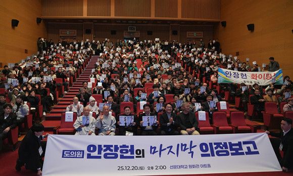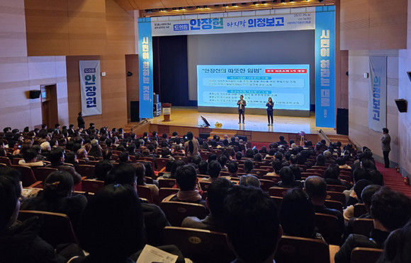 ¾ÈÀåÇå Ãæ³²µµÀÇ¿ø(¾Æ»ê5¡¤´õºÒ¾î¹ÎÁÖ´ç)ÀÌ 20ÀÏ ¿ÀÈÄ, ¾Æ»ê ¼±¹®´ëÇб³ ¿øÈ°ü ¾ÆÆ®È¦¿¡¼ 1,500¿© ¸íÀÌ ³Ñ´Â ½Ã¹ÎµéÀÌ ¿îÁýÇÑ °¡¿îµ¥ ¡®¸¶Áö¸· ÀÇÁ¤º¸°íȸ¡¯¸¦ ¼ºÈ²¸®¿¡ °³ÃÖÇß´Ù.