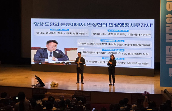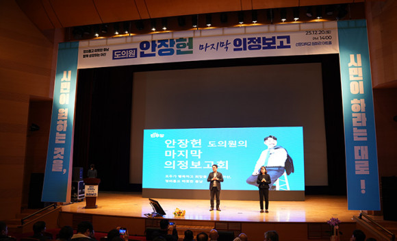 ¾ÈÀåÇå ÀÇ¿øÀº À̳¯ º¸°íȸ¿¡¼ ¡®½Ã¹Î°ú ÇÔ²² ¸¸µç 16³âÀÇ ±â·Ï¡¯À» ÁÖÁ¦·Î ¾Æ»ê½ÃÀÇ¿ø Àç¼±°ú Ãæ³²µµÀÇ¿ø Àç¼±À» °ÅÄ¡¸ç ½×¾Æ¿Â ÀÇÁ¤È°µ¿ ¼º°ú¸¦ »ó¼¼È÷ º¸°íÇß´Ù. ±×´Â ¡°Á¤Ä¡´Â Èû¾ø´Â ÀÚÀÇ ¹«±â¿©¾ß ÇÑ´Ù¡±´Â Æò¼ÒÀÇ Á¤Ä¡ öÇÐÀ» °Á¶Çϸç, ¡®¸»º¸´Ù Çൿ¡¯À¸·Î Áõ¸íÇØ ¿Â Áö³ ½Ã°£À» Â÷ºÐÈ÷ µ¹¾ÆºÃ´Ù.