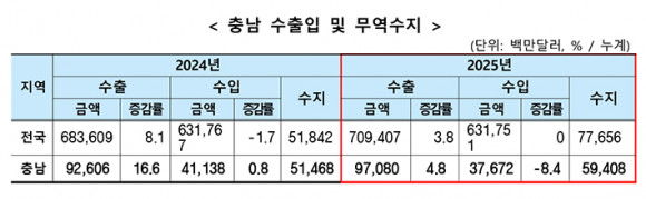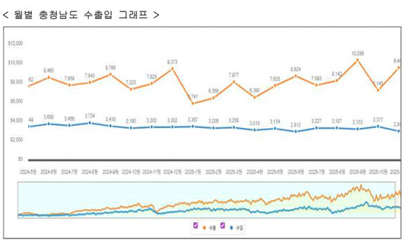 µµ´Â 22ÀÏ ¡®2025³â ÃæÃ»³²µµ ¼öÃâÀÔ µ¿Çâ º¸°í¡¯ ¹ßÇ¥¸¦ ÅëÇØ ¼öÃâ¾× 971¾ï ´Þ·¯, ¼öÀÔ¾× 377¾ï ´Þ·¯¸¦ ±â·ÏÇØ ¹«¿ª¼öÁö 594¾ï ´Þ·¯ ÈæÀÚ¸¦ ´Þ¼ºÇß´Ù°í ¹àÇû´Ù.