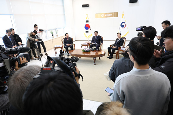 ±è Áö»ç´Â 6ÀÏ ¿ÀÈÄ Á¤ºÎ ¼¼Á¾Ã»»ç¿¡¼ À±È£Áß Çà¾ÈºÎ Àå°üÀ» ¸¸³ª ¡®ÇàÁ¤ÅëÇÕ °£´ãȸ¡¯¸¦ °¡Á³´Ù.
