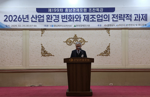 Ãæ³²ºÏºÎ»ó°øÈ¸ÀǼÒ(ȸÀå ¹®»óÀÎ)¿Í Çö´ë°æÁ¦¿¬±¸¿øÀÌ °øµ¿ ÁÖ°üÇϰí ÃæÃ»³²µµ, ¾Æ»ê½Ã, õ¾È½Ã, ÇϳªÀºÇàÀÌ ÈÄ¿øÇÏ´Â ¡®Á¦199Â÷ Ãæ³²°æÁ¦Æ÷·³¡¯ÀÌ 25ÀÏ(¼ö) ¿ÀÀü 7½Ã, ¿Â¾ç°ü±¤È£ÅÚ 3Ãþ ´ÙÀ̾ƸóµåȦ¿¡¼ °³ÃֵƴÙ.