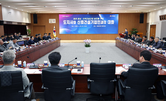 Ãæ³²µµ´Â 25ÀÏ µµÃ» ´ëȸÀǽǿ¡¼ ¡®µµÁö»ç¿Í ½Å·Ú°Ç¼³±â¾÷ÀΰúÀÇ ´ëÈ¡¯ ÀÚ¸®¸¦ ¸¶·ÃÇϰí Áö¿ª °Ç¼³»ê¾÷ ¹ßÀü ¹æÇâÀ» ¸ð»öÇß´Ù.