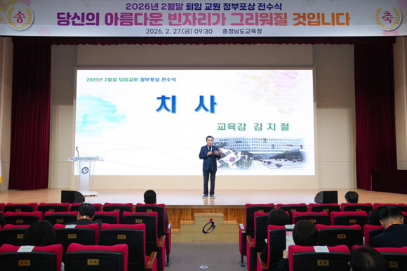 Ãæ³²±³À°Ã», 2026³â 2¿ù¸» ÅðÁ÷ ±³¿ø Á¤ºÎÆ÷»ó Àü¼ö½Ä °³ÃÖ