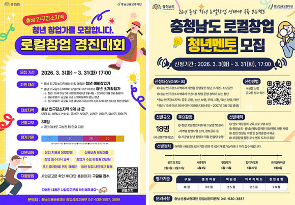 ¸ðÁý ±â°£Àº ¿À´Â 31ÀϱîÁöÀ̸ç, °øÁÖ¡¤º¸·É¡¤³í»ê¡¤±Ý»ê¡¤ºÎ¿©¡¤¼Ãµ¡¤Ã»¾ç¡¤¿¹»ê¡¤ÅÂ¾È µî Àα¸°¨¼ÒÁö¿ª¿¡¼ â¾÷ ¿¹Á¤ÀΠû³â ¿¹ºñâ¾÷°¡ ¹× 3³â À̳» Ãʱâ â¾÷°¡¶ó¸é ½ÅûÇÒ ¼ö ÀÖ´Ù.