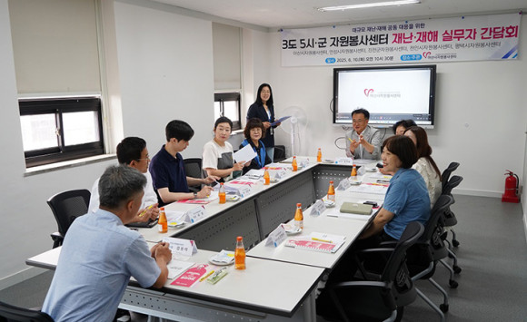 ¾Æ»ê½ÃÀÚ¿øºÀ»ç¼¾ÅÍ(¼¾ÅÍÀå ±è±ââ)´Â Áö³ 6¿ù 10ÀÏ ´ë±Ô¸ð À糡¤ÀçÇØ °øµ¿ ´ëÀÀÀ» À§ÇØ 5°³ ÀÚ¿øºÀ»ç¼¾ÅÍ(¾Æ»ê½Ã, ¾È¼º½Ã, ÁøÃµ±º, õ¾È½Ã, ÆòÅýÃ) ½Ç¹«ÀÚ °£´ãȸ¸¦ °³ÃÖÇß´Ù°í ¹àÇû´Ù.