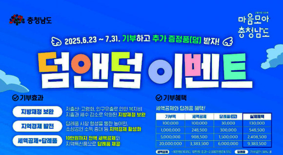| | ¨Ï (ÁÖ)¿Â¾ç½Å¹®»ç | | Ãæ³²µµ´Â ¿À´Â 23ÀϺÎÅÍ 7¿ù 31ÀϱîÁö °íÇâ»ç¶û±âºÎ ½Ã Á¦°øµÇ´Â ´ä·Êǰ¿¡ ÁõÁ¤Ç°À» Ãß°¡·Î Á¦°øÇÏ´Â ´ý¾Ø´ý À̺¥Æ®¸¦ ÁøÇàÇÑ´Ù°í 6¿ù 18ÀÏ ¹àÇû´Ù.