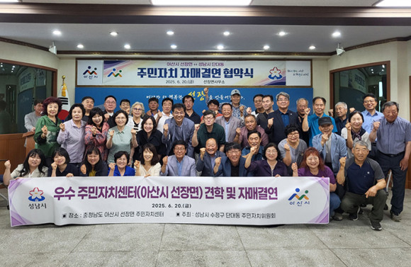 ¾Æ»ê½Ã ¼±Àå¸é ÁÖ¹ÎÀÚġȸ(ȸÀå ¹Ú½Å±Ô)¿Í ¼º³²½Ã ¼öÁ¤±¸ ´Ü´ëµ¿ ÁÖ¹ÎÀÚÄ¡À§¿øÈ¸(À§¿øÀå ÇѼ®ºÀ)´Â Áö³ 20ÀÏ ¼±Àå¸é ÇàÁ¤º¹Áö¼¾ÅÍ¿¡¼ ÀڸŰῬ Çù¾à½ÄÀ» ü°áÇß´Ù.