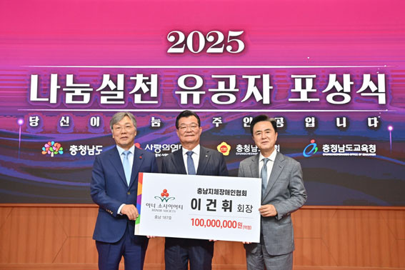 ¸ÕÀú, ¾Æ³Ê¼Ò»çÀÌ¾îÆ¼ °¡ÀԽĿ¡¼´Â À̰ÇÈÖ Ãæ³²ÁöüÀå¾ÖÀÎÇùȸ ȸÀåÀÌ 1¾ï ¿ø ÀÌ»ó ±âºÎ¸¦ ¾àÁ¤ÇÏ¸ç ³ª´® ¹®È¸¦ ½ÇõÇß´Ù.