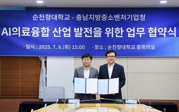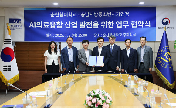¼øÃµÇâ´ë(ÃÑÀå ¼Ûº´±¹)´Â 7¿ù 8ÀÏ(È) ´ëÇк»ºÎ ÁßȸÀǽǿ¡¼ Ãæ³²Áö¹æÁß¼Òº¥Ã³±â¾÷û(ûÀå ±èÀ±¿ì)°ú ¡®AIÀÇ·áÀ¶ÇÕ »ê¾÷ ¹ßÀü¡¯À» À§ÇÑ ¾÷¹«Çù¾à(MOU)À» ü°áÇß´Ù°í ¹àÇû´Ù.