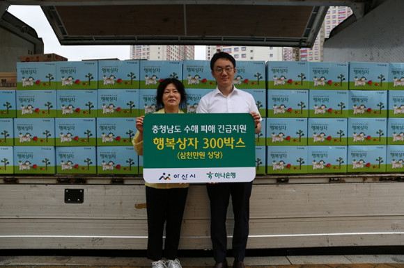 ¾Æ»ê½Ã(½ÃÀå ¿À¼¼Çö)°¡ Çϳª±ÝÀ¶±×·ìÀ¸·ÎºÎÅÍ ÃÖ±Ù ÁýÁßÈ£¿ì·Î Å« ÇÇÇØ¸¦ ÀÔÀº ÁֹεéÀ» À§ÇÑ ±ä±ÞÁö¿ø¹°Ç°ÀÎ ¡®Çູ»óÀÚ¡¯ 300°³¸¦ Àü´Þ¹Þ¾Ò´Ù.
