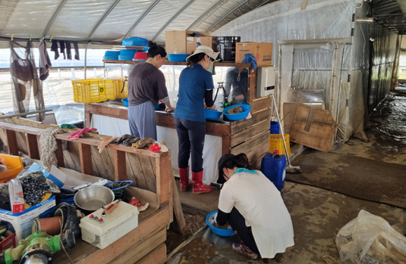 À̹ø ºÀ»çȰµ¿¿¡ Âü¿©ÇÑ Àç´Ü Á÷¿øµéÀº ÁøÈëÅÁÀ¸·Î º¯ÇÑ ÇϿ콺 ¹Ù´ÚÀ» Á¤ºñÇϰí, ħ¼ö·Î ¿À¿°µÈ ÀÚÀ縦 ¿Å±â°í ¹°·Î ¾Ä¾î³»´Â ÀÛ¾÷À» ÁøÇàÇÏ´Â µî ³ó°¡ÀÇ Á¶¼ÓÇÑ Àç°³¸¦ µµ¿Ô´Ù.