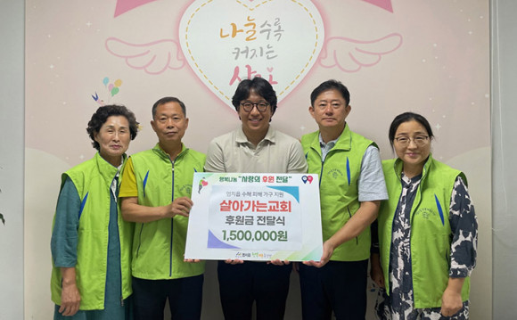 ¾Æ»ê½Ã ¿°Ä¡À¾ ¼ÒÀç »ì¾Æ°¡´Â±³È¸(´ãÀÓ¸ñ»ç Á¶ÇÏ´Ã)°¡ Áö³ 4ÀÏ ¿°Ä¡À¾ ÇູŰ¿òÃßÁø´Ü(°øµ¿´ÜÀå ½É¿ë±Ù, °¸í±¸)¿¡ ¿°Ä¡À¾ ³» ¼öÇØ ÇÇÇØ °¡±¸¸¦ À§ÇÑ ¼º±Ý 150¸¸ ¿øÀ» Àü´ÞÇß´Ù.