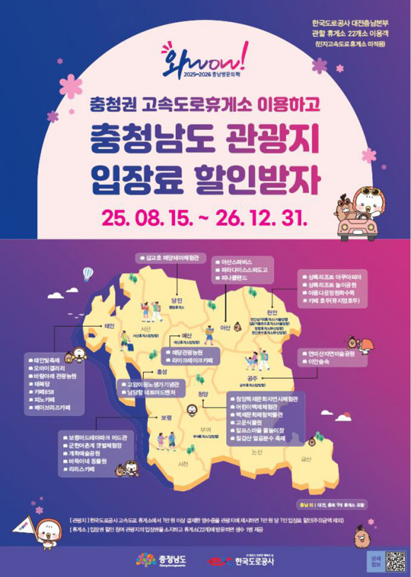 ÀÌ´Â Ãæ³² ¹æ¹®ÀÇ ÇØ Á¾·á ½Ã±îÁö 1³â 5°³¿ù¿©°£ ÁøÇàÇϸç, Çѱ¹µµ·Î°ø»ç ´ëÀüÃæ³²º»ºÎ °üÇÒ °í¼Óµµ·Î ÈÞ°Ô¼Ò 22°³¼Ò¿Í µµ³» 9°³ ½Ã±º 31°³ Á¦ÈÞ °ü±¤Áö¸¦ ´ë»óÀ¸·Î ÇÑ´Ù.