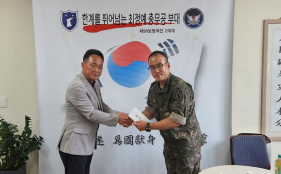¾Æ»ê½ÃÀçÇⱺÀÎȸ(ȸÀå ¾ç¼º¹®)´Â Áö³ 8¿ù 5ÀÏ ¾Æ»ê½Ã ¹è¹æÀ¾ ¼ÒÀç À°±º 3585ºÎ´ë 2´ë´ë¸¦ ¹æ¹®ÇÏ¿© À§¹®±ÝÀ» Àü´ÞÇß´Ù.
