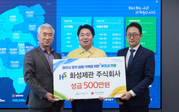ȼºÁ¦°ü ÁÖ½Äȸ»ç(´ëÇ¥ ÀÓÁØ)´Â 1ÀÏ ¾Æ»ê½Ã(¿À¼¼Çö ½ÃÀå)¸¦ ¹æ¹®ÇØ ÃÖ±Ù ÁýÁßÈ£¿ì·Î ÇÇÇØ¸¦ ÀÔÀº Áö¿ª ÁֹεéÀ» Áö¿øÇϱâ À§ÇÑ ¼º±Ý 500¸¸ ¿øÀ» ±âºÎÇß´Ù.
