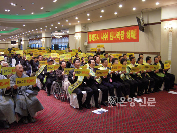 ¹ÎÁÖ´ç Ãæ³²µµ´çÀº 12¿ù 3ÀÏ ¿ÀÈÄ 2½Ã õ¾È¿þµùÄÚ¸®¾Æ¿¡¼ Á¤¼¼±Õ ´ëÇ¥, À̰·¡ ¿ø³»´ëÇ¥, ¾ç½ÂÁ¶ Ãæ³²µµ´çÀ§¿øÀå, Àå »ó ÃÖ°íÀ§¿ø, ÀÌ¹Ì°æ »ç¹«ÃÑÀå, ¿øÇý¿µ Çູµµ½Ã¿ø¾ÈÃßÁøÀ§¿øÈ¸ »óÀÓÀ§¿øÀå, ¹Úº´¼® ÀÇ¿ø, À̽ÃÁ¾ ÃæºÏµµ´çÀ§¿øÀå, ¼±º´·Ä ´ëÀü½Ã´çÀ§¿øÀå, ÀÌ»ó¼± ÃæÃ»±Çºñ´ëÀ§ »óÀÓ´ëÇ¥, °¢¿ø»ç ´ë¿ø½º´Ô µî 700¿©¸íÀÇ ´ç¿ø, ½Ã¹ÎµéÀÌ Âü¼®ÇÑ °¡¿îµ¥ Çູµµ½Ã ¿ø¾È»ç¼ö Ãѱȱâ´ëȸ¸¦ °³ÃÖÇß´Ù. ¾ç½ÂÁ¶ Ãæ³²µµ´çÀ§¿øÀåÀº ´ëȸ»ç¿¡¼ ¡°5³â 6°³¿ù°£ õ¾È¿¡¼ KTX Ÿ°í ±¹È¸¿¡ Ãâ±ÙÇßÁö¸¸, ´©±¸º¸´Ùµµ ¾ÆÄ§¾à¼ÓÀ» Àß Áö۰í, ÀÇÁ¤È°µ¿ÇÏ´Â µ¥ ¾Æ¹«·± ÁöÀåÀÌ ¾ø¾ú´Ù. ÀÌ·¯ÇÑ °ÍÀ» º¼ ¶§, ¼¼Á¾½Ã·Î Á¤ºÎºÎó°¡ ÀÌÀüÇÑ´Ù°íÇØµµ ÇàÁ¤ÀÇ ºñÈ¿À²¼º ÁÖÀåÀº °ÅÁþ ÁÖÀåÀÌ´Ù¡±°í ¸»Çϰí, ¡°¼¼Á¾½Ã¸¦ ¹éÁöÈÇÏ·Á ÇÑ´Ù¸é, À̸í¹Ú ´ëÅë·ÉÀ» ¹°·¯³ª¶ó´Â Á¤±Ç ÅðÁø ¿îµ¿ÀÌ ÀϾ °ÍÀÓÀ» ¾öÁßÇÏ°Ô °æ°íÇÑ´Ù¡±°í ±»Àº ÅõÀïÀÇÁö¸¦ ¹àÇû´Ù. Á¤¼¼±Õ ´ëÇ¥´Â ¡°Çູµµ½ÃƯº°¹ýÀÌ ¿©¾ß ÇÕÀÇ·Î ±¹È¸¿¡¼ 󸮵ƴµ¥ À̸í¹Ú ´ëÅë·ÉÀÌ ¹éÁöÈÇÒ ¼ö ¾ø´Ù. À̸í¹Ú ´ëÅë·ÉÀº ¹ýÀ» ¹«½ÃÇÏ°í ¹ýÀ§¿¡ ±º¸²Çؼ Çູµµ½Ã¸¦ ¹«»êÇÒ ¼ö ¾ø´Ù¡±°í ¸»Çϰí, ¡°¹ÎÁÖ´çÀº ¾î¶² °æ¿ì¿¡µµ º¯Ä¡ ¾Ê°í Çູµµ½Ã¸¦ Áö۱â À§ÇØ ÃÖ¼±À» ´ÙÇÒ °ÍÀÓÀ» ¾à¼Óµå¸°´Ù¡±°í °ÇÑ ¿ø¾È»ç¼ö ÀÇÁö¸¦ õ¸íÇß´Ù. À̰·¡ ¿ø³»´ëÇ¥µµ ¡°³»³â 2¿ù¿¡ Çູµµ½Ã ¹éÁöȸ¦ À§ÇÑ °³Á¤¾ÈÀ» °¡Á®¿À°Å³ª ¼öÁ¤¾ÈÀ» °¡Á®¿À¸é ±âÇÊÄÚ ¸·¾Æ³¾ °ÍÀÌ°í ºÎ°á½Ãų °ÍÀÌ´Ù. ºÎ°áµÇ¸é ¹ý¾È¸¸ ºÎ°áµÇ´Â °ÍÀÌ ¾Æ´Ï´Ù. À̸í¹Ú Á¤±Çµµ ºÎ°á½Ã۰í Çѳª¶ó´çµµ ºÎ°á½Ã۰ڴÙ. ¿©·¯ºÐ²² ±»Àº ÀÇÁö·Î ¶Ê¶Ê ¹¶ÃÄ ¹ÎÁÖ´ç°ú ÇÔ²² ½Î¿öÁֽñ⸦ ´Ù½Ã ÇÑ ¹ø ºÎŹÇÑ´Ù¡±¸ç ¹ÎÁÖ´çÀÇ ÀÇÁö¸¦ ´Ù½Ã ÇÑ ¹ø õ¸íÇÏ¿´´Ù. ¹Ú¼öÇö °øÁÖ¿¬±âÁö¿ªÀ§¿øÀåÀÇ »çȸ·Î ½ÃÁ¾Àϰü ¶ß°Å¿î ¿±â ¼Ó¿¡¼ ÁøÇàµÈ À̳¯ Çà»ç´Â ±èÈ«Àå ´çÁøÁö¿ªÀ§¿øÀåÀÇ °³È¸¼±¾ð, º¹±â¿Õ Ãæ³²µµ´çºÎÀ§¿øÀåÀÇ ´çÁöµµºÎ ¼Ò°³°¡ ÀÖ¾ú°í, ¼¼Á¾½Ã ÇöÁöÁÖ¹ÎÀ» ´ëÇ¥ÇØ ±èºÎÀ¯ Çѱ¹»êºÒÀçÇØ¹æÁöÇùȸ ¿¬±â±ºÁöºÎÀåÀÌ ¼¼Á¾½Ã ÁÖ¹ÎÀÇ ¾î·Á¿î Çö½Ç°ú ºÐ³ë¸¦ ÀüÇßÀ¸¸ç, ´ëÇб³ 1ÇгâÀÎ Á¤ÃÊÈñ ¾çÀº ¡°À̸í¹Ú ´ëÅë·ÉÀÌ ´ëÇб³ µî·Ï±Ý ¹Ý°ª °ø¾àµµ ÁöŰÁö ¾Ê´Â´Ù¡±°í ¸»ÇÏ¸ç ¾à¼ÓÀ» ÁöŰÁö ¾Ê´Â ´ëÅë·ÉÀ» ºñÆÇÇØ ´«±æÀ» ²ø¾ú´Ù. ¶ÇÇÑ ¿øÇý¿µ, ¹Úº´¼®, À̽ÃÁ¾ÀÇ¿øÀÇ ¹ß¾ðÀÌ À̾îÁú ¶§¸¶´Ù ÇÔ¼º°ú ¹Ú¼ö°¡ ÅÍÁ® ³ª¿Ô°í, ÀÌ»ó¼± Çູµµ½Ã¹éÁöÈÀúÁö ÃæÃ»±Çºñ»ó´ëÃ¥À§ »óÀÓ´ëÇ¥¿Í °¢¿ø»ç ´ë¿ø½º´ÔÀÌ ÇàÁ¤µµ½Ã ¿ø¾È»ç¼ö¸¦ À§ÇÑ ¿¬´ë ÀÇÁö¸¦ Ç¥¸íÇß´Ù. ÀÌ ÀÚ¸®¿¡¼ ¹ÎÁÖ´ç Ãæ³²µµ´çÀº ±è¹Ì°æ ¿©¼ºÀ§¿øÀå°ú ¹Ú¿ÏÁÖ Ãµ¾ÈÀ»Áö¿ªÀ§¿øÀåÀÌ ³¶µ¶ÇÑ ÅõÀï°áÀǹ®À» ÅëÇØ ¡°À̸í¹Ú ´ëÅë·ÉÀº ¡ãÁ¤±ÇȹµæÀ» À§ÇÑ ´ë±¹¹Î »ç±â±ØÀ» °í¹éÇÏ°í ±¹¹Î ¾Õ¿¡ ¼®°í´ëÁËÇ϶ó ¡ãÁ¤ºÎ ºÎó ÀÌÀü¾ø´Â ¼¼Á¾½Ã ¹éÁöÈ È¹Ã¥ Áï°¢ Áß´ÜÇ϶ó ¡ãÀÚÁ·±â´ÉÀÌ Æ÷ÇԵǾîÀÖ´Â ÇàÁ¤Á߽ɺ¹ÇÕµµ½Ã, ¼¼Á¾½Ã¸¦ ¿ø¾È´ë·Î ÃßÁøÇ϶ó ¡ã±¹¹«ÃѸ®½Ç°ú 9ºÎ2ó2ûÀÇ ÇàÁ¤±â°ü ÀÌÀü º¯°æ°í½Ã¸¦ Áï°¢ ½ÃÇàÇ϶ó ¡ã¼¼Á¾½Ã¸¦ ³¡³» ¹«»ê½Ã۰íÀÚ ÇÑ´Ù¸é À̸í¹Ú ´ëÅë·ÉÀº Áï°¢ ÅðÁøÇÏ¶ó¡± °í ¿ä±¸Çß´Ù. ÀÌ¾î ¡°¿ì¸®´Â ÇàÁ¤Á߽ɺ¹ÇÕµµ½Ã, ¼¼Á¾½ÃÀÇ ¿ø¾È ÃßÁøÀ» ÀïÃëÇÏ´Â ±×³¯±îÁö ³¡±îÁö ÅõÀïÇÒ °ÍÀÓÀ» ´Ù½Ã ÇÑ ¹ø ¼±¾ðÇÑ´Ù¡±°í ÅõÀïÀÇÁö¸¦ õ¸íÇϰí, °ÈÆ½Ä ¾Æ»êÁö¿ªÀ§¿øÀåÀÇ ¡°ÇàÁ¤µµ½Ã »ç¼öÇÏ°í ±¹°¡±ÕÇü¹ßÀü ÀÌ·èÇÏÀÚ. ÃæÃ»µµ¹Î ¿¹Þ¾Ò´Ù À̸í¹ÚÁ¤±Ç °¢¿ÀÇ϶󡱴 ±¸È£ Á¦Ã¢À¸·Î Çà»ç¸¦ ¸¶¹«¸® Çß´Ù. ÀÌ ³¯ Çà»ç¿¡ ¾Õ¼ Á¤¼¼±Õ ´ëÇ¥´Â Çà»çÀå Àα٠À½½ÄÁ¡¿¡¼ ³ë¼÷Èñ Ãæ³² ¾à»çȸÀå, ±èÅ¿¬ õ¾È½Ã ±³¸ðȸÀå, ¼ÛÈĺó Ãæ³² ÀÇ»çȸ ȸÀå, Á¤Çױ⠸ð´ÚºÒ ºÀ»çȸÀå, Á¶ÀÎÈ£ ´Ü±¹´ëÇб³ ºÎÃÑÀå, ÀÌȲÀç Ãæ³² Ä¡°úÇùȸÀå, À̹è¾È Ãæ³²°øÀÎÁß°³»çÇùȸ ÁöºÎÀå, ½ÅÈ£¼ø ÀÚÀ²¹æ¹ü´ë ¿¬ÇÕȸÀå, À±¼ºÈñ Çѱ¹¿¹ÃÑ Ãµ¾ÈȸÀå, À̼º¿ì õ¾È Áß¾Ó½ÃÀå ³ëÁ¡»ó¿¬ÇÕȸÀå, È«Á¾¼ö Ãæ³² ÇÑÀÇ»çÇùȸ, Á¤ÁöÇØ õ¾ÈÀ¯µµÈ¸Àå, À±¿©È« õ¾È Çâ±³ Àü±³, ÀÌ»ó¼± ¼¼Á¾½Ãºñ»ó´ëÃ¥À§ »óÀÓ´ëÇ¥, ÀÓ½Â¾È ³ª»ç·¿ ´ëÇб³ ÃÑÀå µî Ãæ³² ¹× õ¾ÈÁö¿ª ÁÖ¿äÀÎ»ç µî°ú °£´ãȸ¸¦ °®°í ÇàÁ¤µµ½Ã ¿ø¾È»ç¼öÀÇ ÀÇÁö¸¦ ¹àÈ÷°í, ÀǰßÀ» ¼ö·ÅÇϱ⵵ Çß´Ù. À̳¯ Âü¼®ÇÑ ÀλçµéÀº ÇѰᰰÀÌ "ÇàÁ¤¼ö¹ÝÀÌ ¾ÕÀå¼ ¹ýÀ» ÁöÄÑ¾ß 