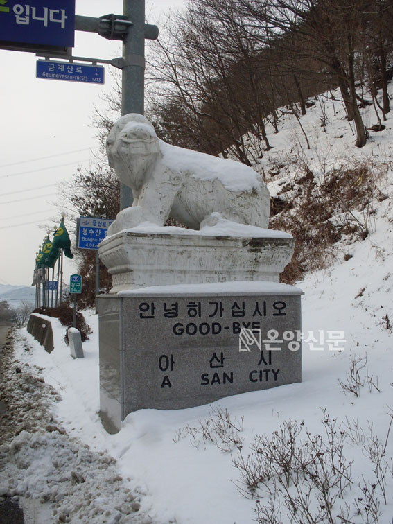°¢Èê°í°³ Á¤»ó¿¡ ¼¼¿öÁ® ¿À°¡´Â À̵鿡°Ô ¾Æ»ê½Ã¹ÎµéÀÇ µû¶æÇÑ Àλ縻À» ´ë½Å Àü´ÞÇØÁÖ´ø ÇØÅ»óÀÌ »ê¶æÇÏ°Ô ´ÜÀåµÅ ¾Æ»êÀÇ À̹ÌÁö¸¦ ¹à°Ô ÇØÁÖ°í ÀÖ´Ù. Áö³ÇØ ¿©¸§±îÁö¸¸ ÇØµµ ÀÌ ÇØÅ»ó(¿ìÃø¿¡ ¼³Ä¡µÈ °Í)Àº ¼³Ä¡ ´ç½Ã À߸øÀ¸·Î ¾Æ»ê½Ã¸¦ ¹þ¾î³ª´Â À̵鿡°Ô ¡®¾î¼ ¿À½Ê½Ã¿À¡¯, ¾Æ»êÀ¸·Î µé¾î¿À´Â À̵鿡°Ô ¡®¾È³çÈ÷ °¡½Ê½Ã¿À¡¯¶ó´Â Àλ縻À» °Ç³×°í ÀÖ¾ú´Ù. <º»Áö 477È£ 2009³â 7¿ù 7ÀÏÀÚ º¸µµ, ÁÂÃø »çÁø ÂüÁ¶> ±×ÈÄ Áö³ÇØ °¡À» ¾Æ»ê½Ãû ¹®È°ü±¤°ú¿¡¼ ´ë¸®¼®ÆÇÀ¸·Î ÇÏ´Ü ºÎºÐÀ» Á¤ºñÇϰí Àλ縻À» °íÃijÖÀ¸¸é¼ ¹Ù·ÎÀâÇû´Ù. ÀÌ °¢Èê°í°³´Â ¾Æ»ê-°øÁÖ ¹æ¸é ¿©Çà°´µé »Ó ¾Æ´Ï¶ó ¾Æ»ê±â¸Æ ¹× ±ÝºÏÁ¤¸ÆÀ» Á¾ÁÖÇÏ´Â »ê¾ÇÀεéÀÌ ¹Ýµå½Ã Åë°úÇÏ´Â ÁöÁ¡À¸·Î ¾Æ»êÀÇ Ã¹ÀλóÀ» ³ªÅ¸³»´Â ¿äÃæÁö·Î ²ÅÈù´Ù. | | | ¡ã ¾Æ»ê ¹æÇâ¿¡¼ ¹Ù¶óº» ÇØÅ»ó | | | | ¡ã °øÁÖ ¹æÇâ¿¡¼ ¹Ù¶óº» ÇØÅ»ó | | | | ¡ã °øÁÖ½ÃÀåÀÌ Á¦ÀÛÇØ ¼³Ä¡ÇÑ °¢Èê°í°³ Ç¥Áö¼® |