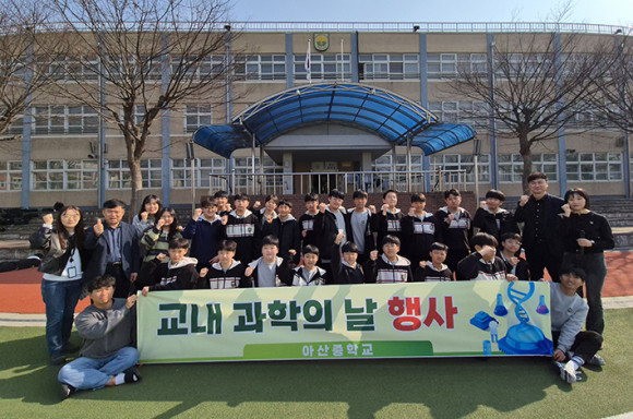 ¾Æ»êÁßÇб³(±³Àå °ÈñÁØ)´Â 3¿ù 23ÀÏ ¿ù¿äÀÏ ±³³»¿¡¼ ¡®°úÇÐÀÇ ³¯¡¯À» ¸Â¾Æ ¡®Ã¢ÀÇÀûÀÎ °úÇÐÀû »ç°í·Î ¹Ì·¡¸¦ ¿©´Â ÇнÀ¡¯À» ÁÖÁ¦·Î ¡®±³³» °úÇÐÀÇ ³¯ Çà»ç¡¯¸¦ ¿î¿µÇß´Ù.