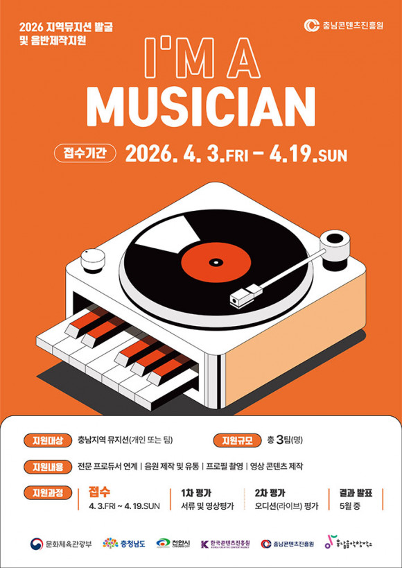 | | ¡è¡è 2026 Áö¿ª¹ÂÁö¼Ç ¹ß±¼ ¹× À½¹ÝÁ¦ÀÛÁö¿ø I¡¯M A MUSICIAN Æ÷½ºÅÍ <»çÁø Á¦°ø=Ãæ³²ÄÜÅÙÃ÷ÁøÈï¿ø> | ¨Ï (ÁÖ)¿Â¾ç½Å¹®»ç | |