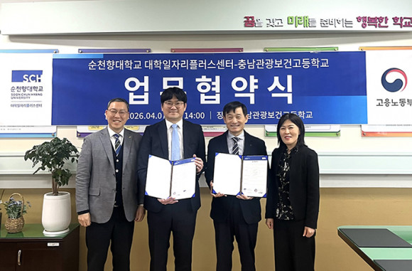 ¼øÃµÇâ´ëÇб³(ÃÑÀå ¼Ûº´±¹) ´ëÇÐÀÏÀÚ¸®Ç÷¯½º¼¾ÅÍ´Â Ãæ³²°ü±¤º¸°Ç°íµîÇб³¿Í ¡®°í±³»ý ¸ÂÃãÇü °í¿ë¼ºñ½º¡¯ ¿î¿µÀ» À§ÇÑ ¾÷¹«Çù¾à(MOU)À» ü°áÇß´Ù°í ¹àÇû´Ù.